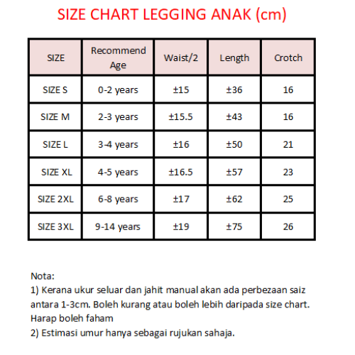 Jangkaan umur hanya sebagai rujukan, sila ukur badan baby/anak untuk pilih saiz yang lebih sesuai